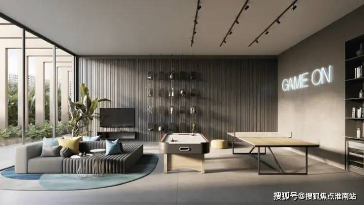 首层还设有一间种类多样的游戏空间,包含桌球、乒乓球、电子游戏,帮助住户放松身心。