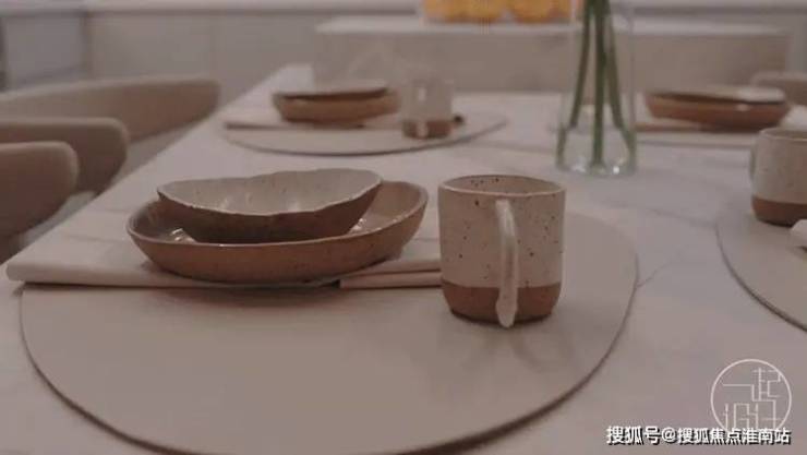 一侧储物墙摆满各类餐具用品,整个空间处处充满精致细节。
