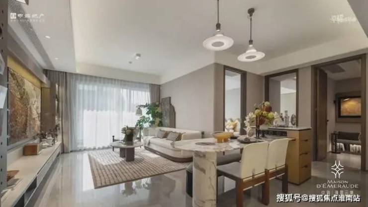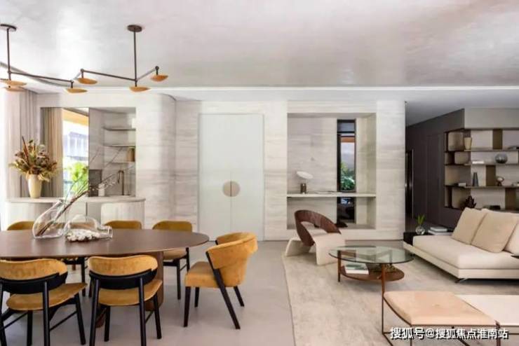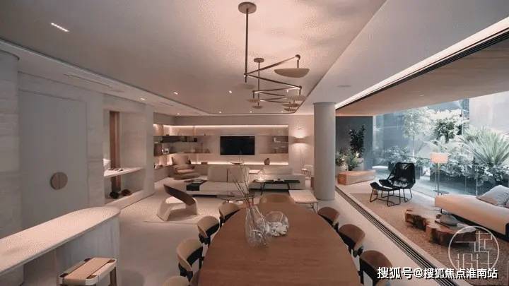 340㎡的公寓大平层享有客餐厨三合一的全开放式空间,外侧配设L型连通大阳台,给人一种宽敞且大气的空间感受。
