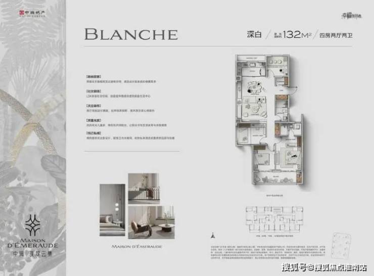 每户公寓均拥有四间卧室套房,各自设有卫浴空间,其中主卧房还有一间独立衣帽间,室内装饰采用中性色调和天然涂料为主,大框架移门引进入充足自然光。