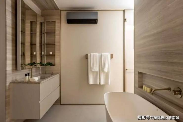 精致的浴室弥漫豪华酒店般的氛围,细腻的大理石墙体饰面质感满满。