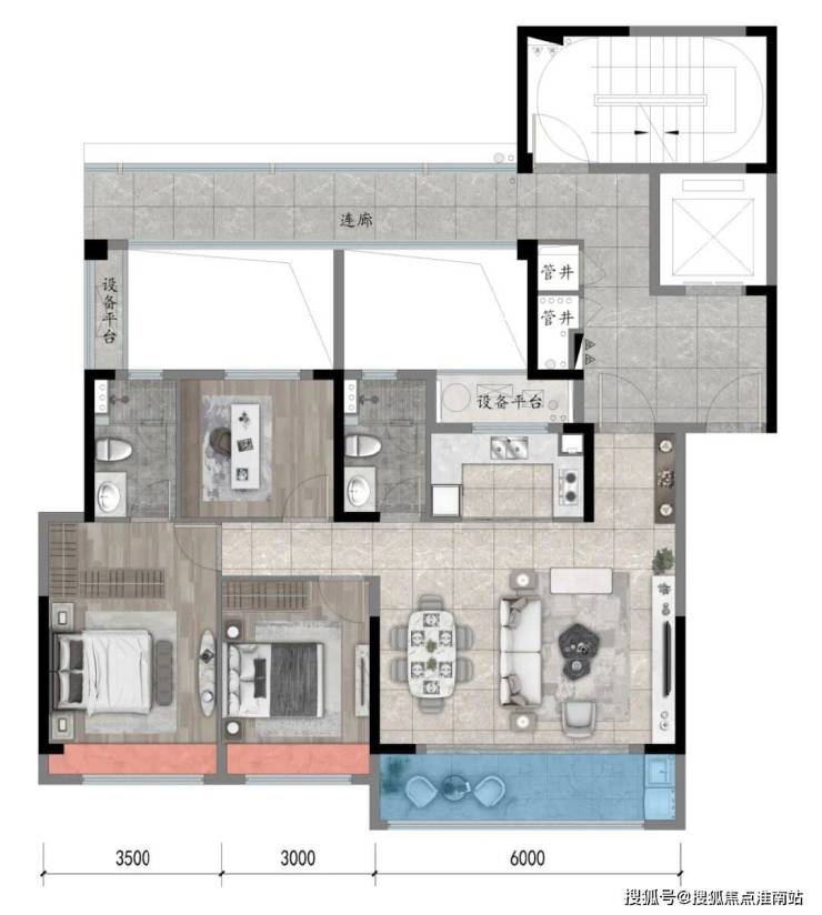 建面约116㎡的起步档户型,也充满了改善细节。一进门就是独立的玄关,穿越而过是一个约6米的客餐大横厅,连接大阳台,阳光清风扑面而来。主卧约3.5米,带全景飘窗,可以尽情欣赏窗外风景;南北各一间次卧,面宽约3米、3.15米,紧邻次卫;整个户型明亮通透,动线合理,是116㎡面积段里,不可多得的优质户型。