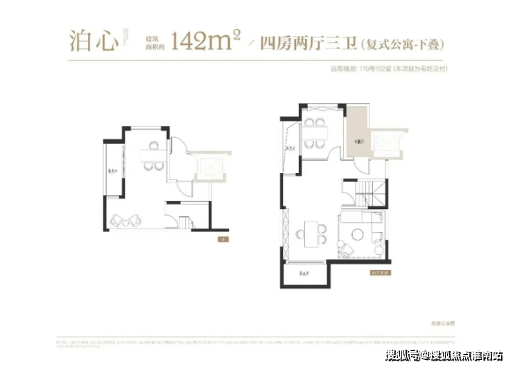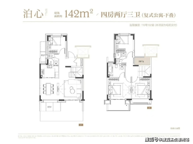 项目叠墅户型有建面约142㎡下叠,建面约139㎡上叠。