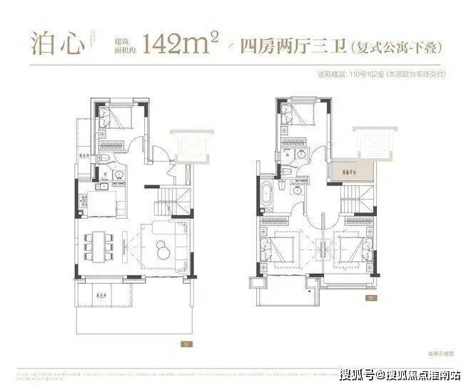 叠墅:叠墅一共四层,分为上/下叠,上叠建筑面积约139㎡,下叠建筑面积约142㎡。