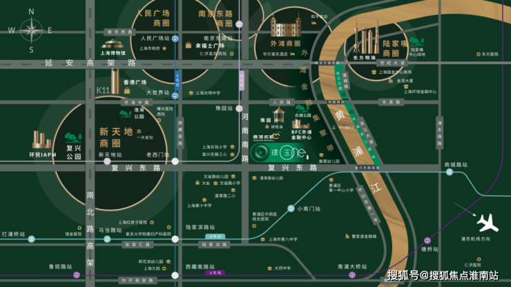 左拥新天地、淮海中路,右抱陆家嘴,北倚人广、外滩,南侧是一路连缀的豪宅区。