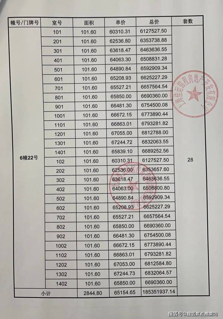 一房一价表发布: