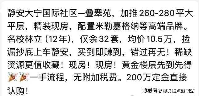 最新消息:接群友爆料!大宁明园森林都市·叠翠苑仍有房源,32套大平层,建面约260-280㎡,均价10.5万/㎡,精装现房交付,配置米勒嘉格纳等高端品牌,定金200万可直接认购!