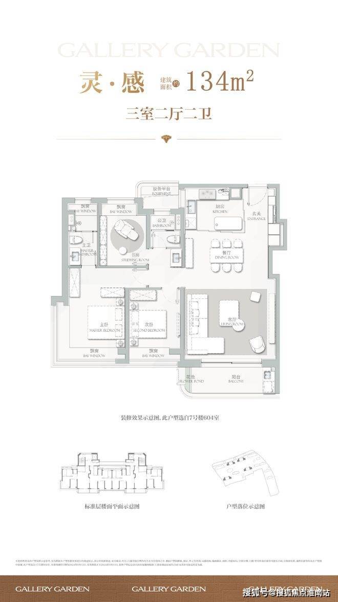 134㎡户型配备270°转角飘窗,主卧双台盆设计,提升居住舒适度。