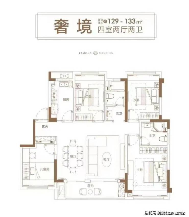 建面约129㎡四房,则是改善置业的优选。