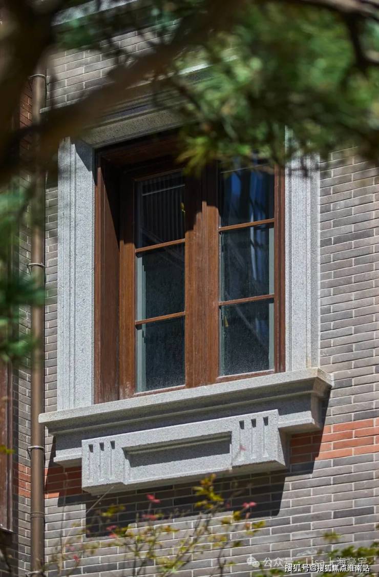 而在与砖连接的窗体,保利永兴里别墅的窗框及四周采用了仿木纹铝型材和铝板,门窗套为浅色石材。
