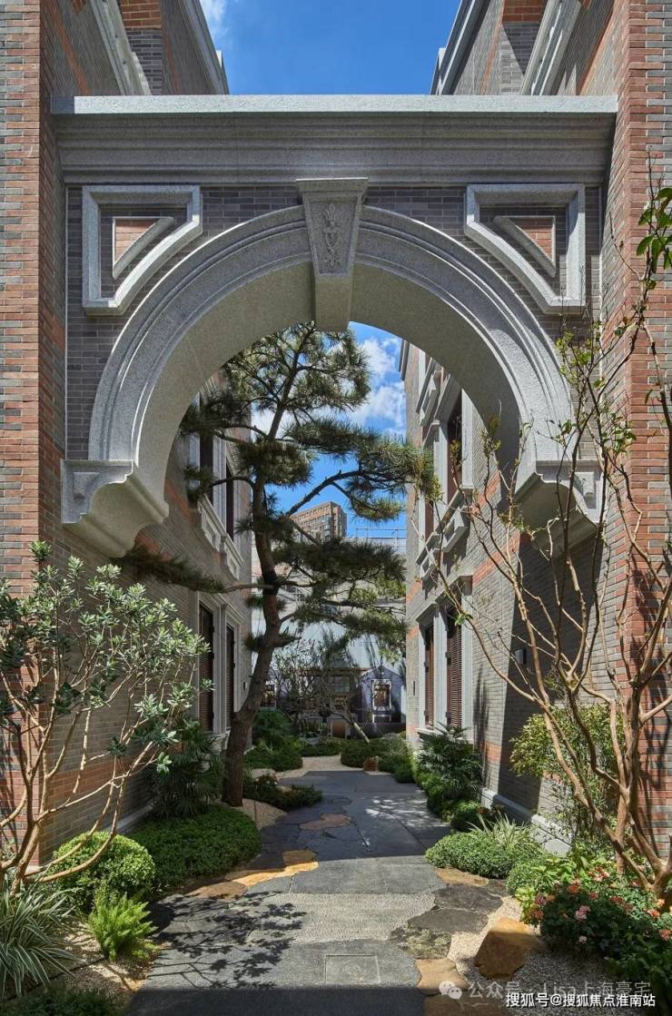 在建筑细节上融入了海派元素,除了拱形门坊及雕花复刻的湖州会馆之外,菱形山花元素还原老建筑印记、巷道风貌铺装叠加红砖清水墙等。