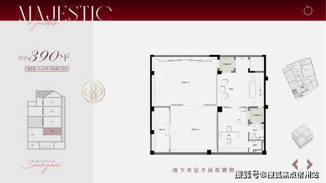 叠拼面积段约195-310㎡,分为1-2F下叠、3、4、5F为中间的平层面积236㎡,6-7F为上叠,计56套。