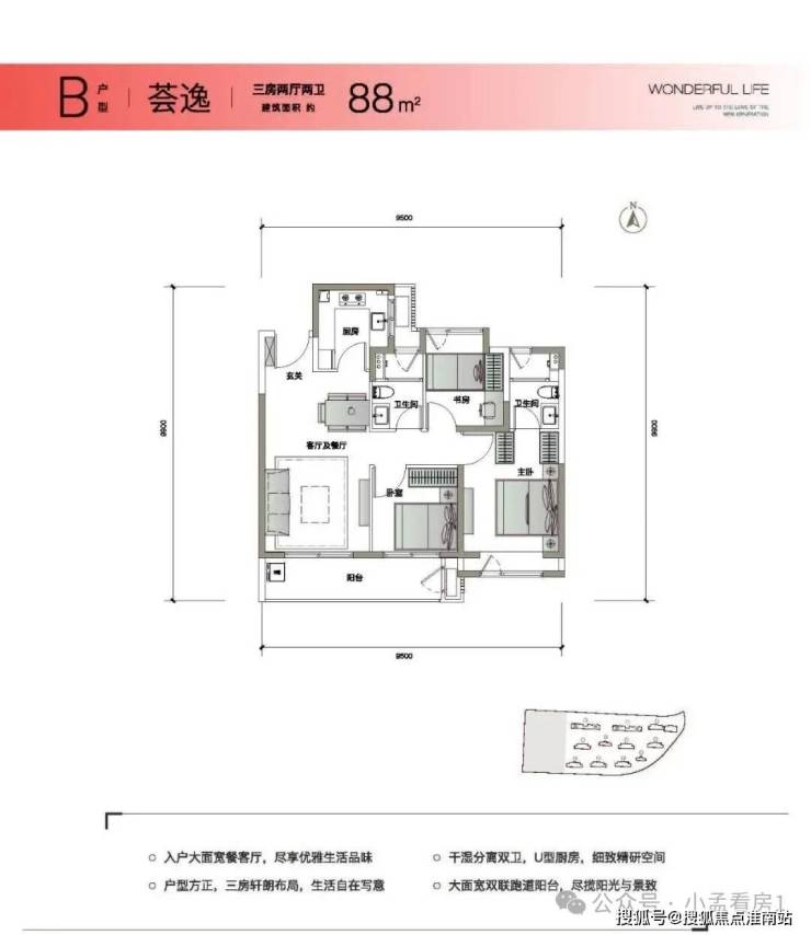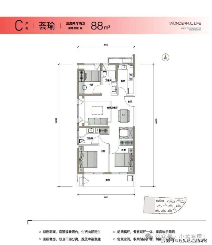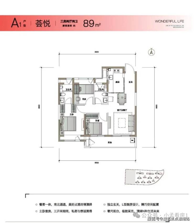 约89-120㎡全能精致户型,毛坯&精装的双重选择,3/4房2厅2卫的户型设计,匹配成长型家庭,聚合沪上品质菁英青年。