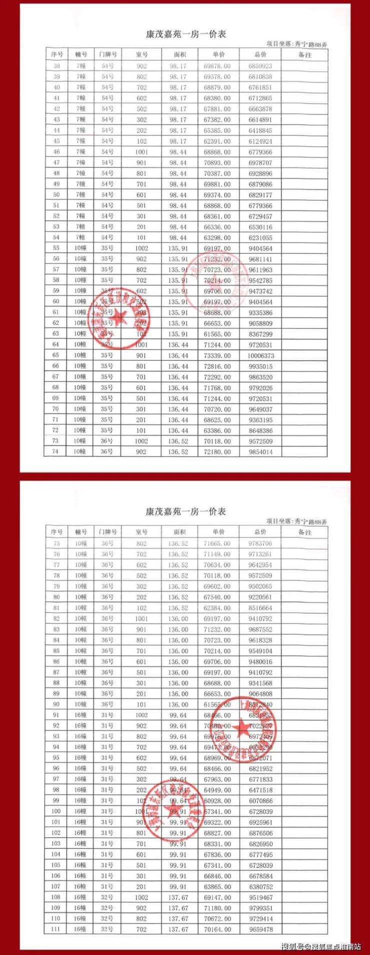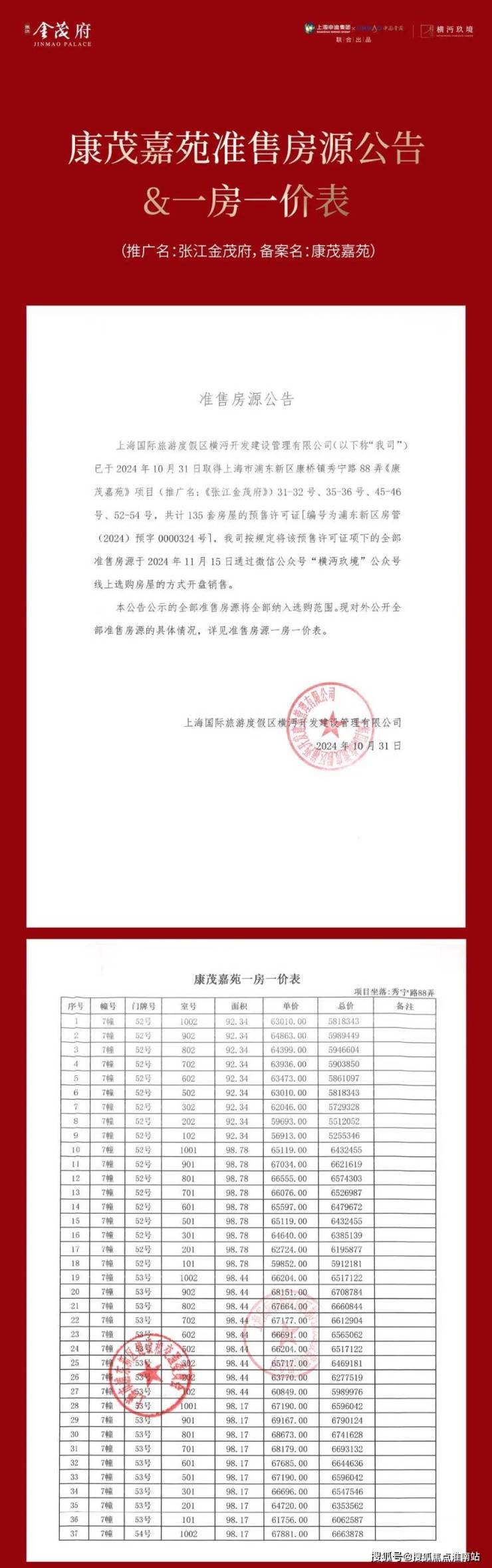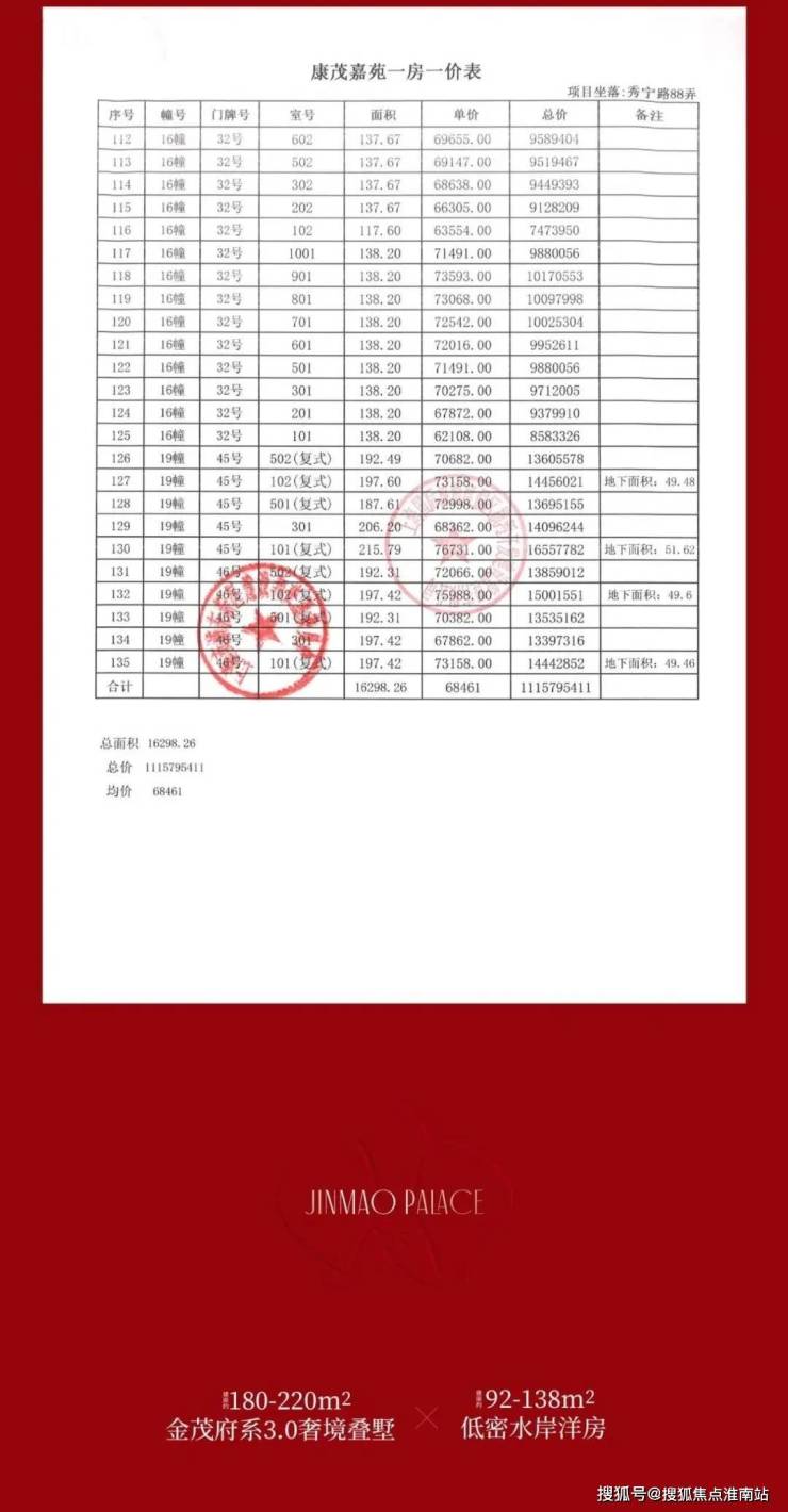 一房一价表公示 开始认购