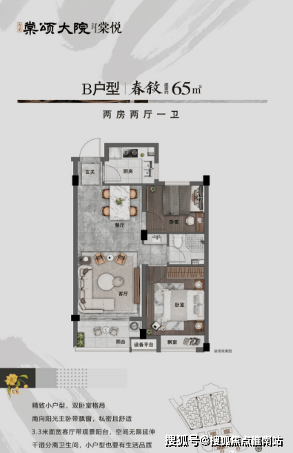 最小65㎡两房一卫户型,共享别墅级高端物业服务。