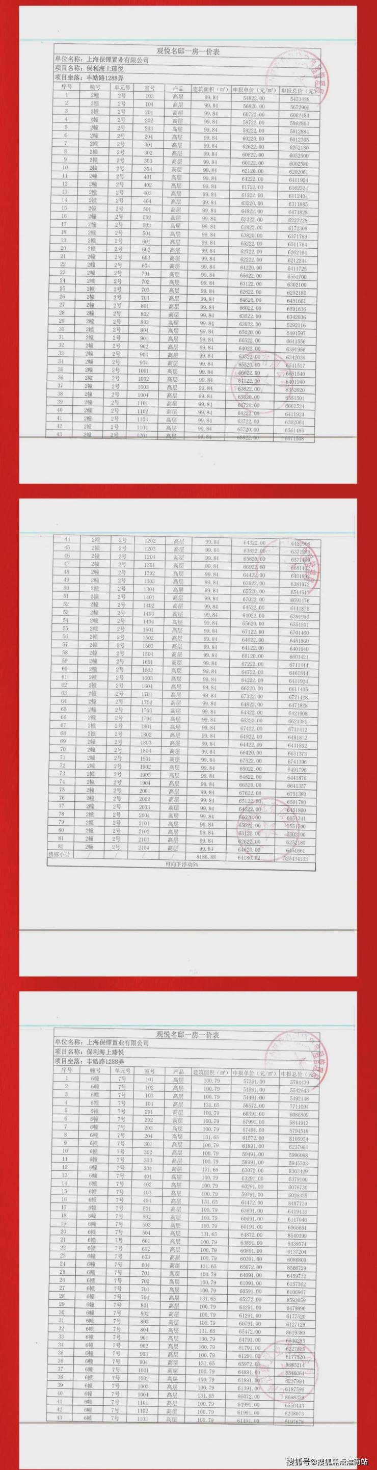 最新一房一价表: