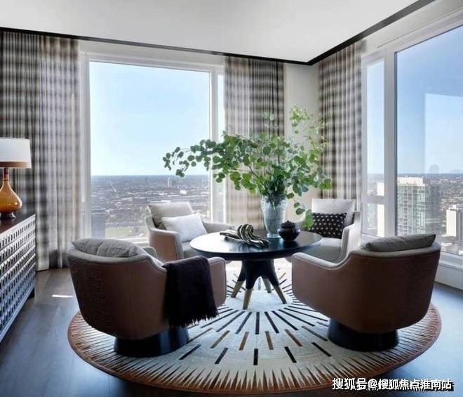 缦云上海售楼处电话:400-881-8994(售楼处最新电话)上海杨浦缦云上海官方电话:400-8818-994✔(官方售楼处预约看房热线)百分之百的优雅对材质的要求异常严格,而胡桃木的材质恰好强调了空间的高级感,利用老式LaVerne茶几、KellyWearstler的椅子和FortStreetStudio的地毯让人仿佛穿越回五十年代的复古时空.