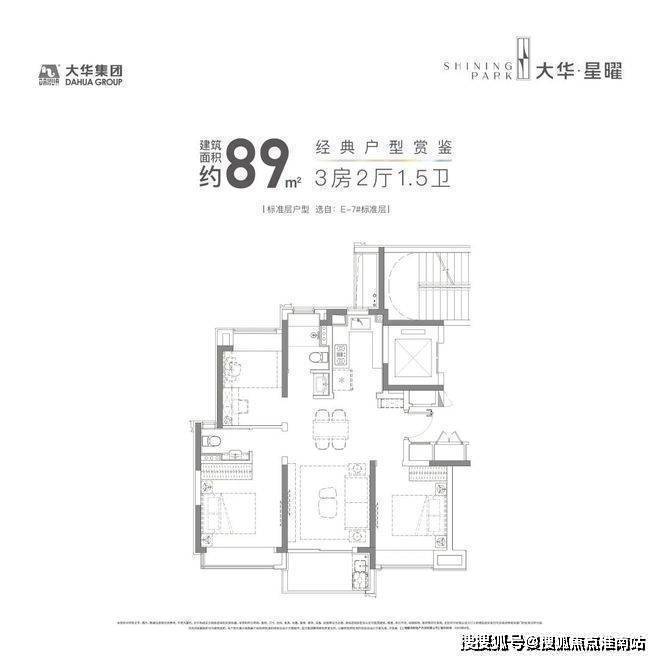 所以虽然是约89㎡的紧凑型3房,但这个户型还是有空间做了一个1.5卫的设计,保证了主人的私密空间,也避免了早高峰用厕的尴尬。