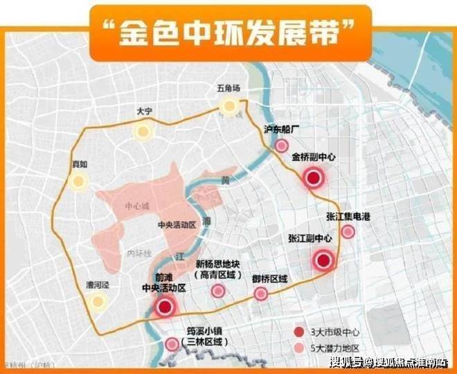 其中,金桥副中心与前滩、张江,组成了金色中环带上重要的三大城市中心。