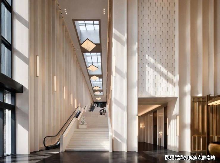 它是中興傲舍的其中一个地面大堂。走进大堂,你看到了一条三层挑空的上升之路,它就像一座圣殿,让你瞬间迸发出艺术意义上的「崇高感」——它是美术馆式的阶梯,与你擦肩而过的,是沐浴着天光的雕塑作品。
