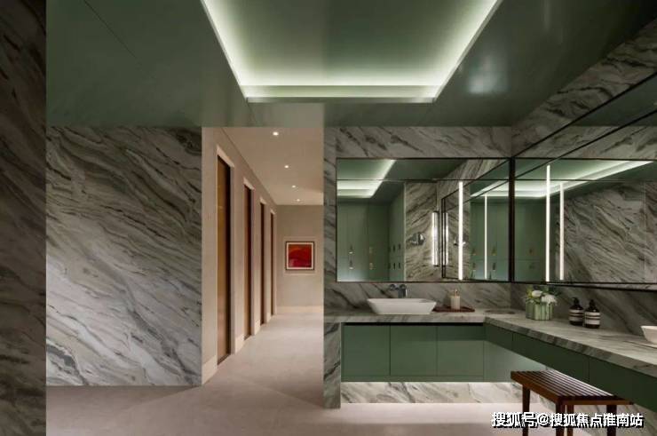 更有面积超大的会所空间,像是行政酒廊与图书馆的复合体,它不是一览无遗的辽阔,而是隔而不离的丰饶。