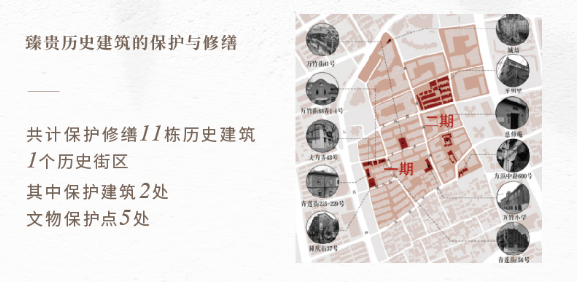 项目周边的历史文化古迹丰富,包括豫园、日涉园等百年私家园林,以及城隍庙、白云观、沉香阁等殿宇建筑。在基地内部,还有黄浦区文物保护单位以及一些具有悠久历史的保留建筑。如今,露香园已经是上海历史文化风貌区内持续时间最长、规模最大的以居住为主的城市更新成片开发示范项目。