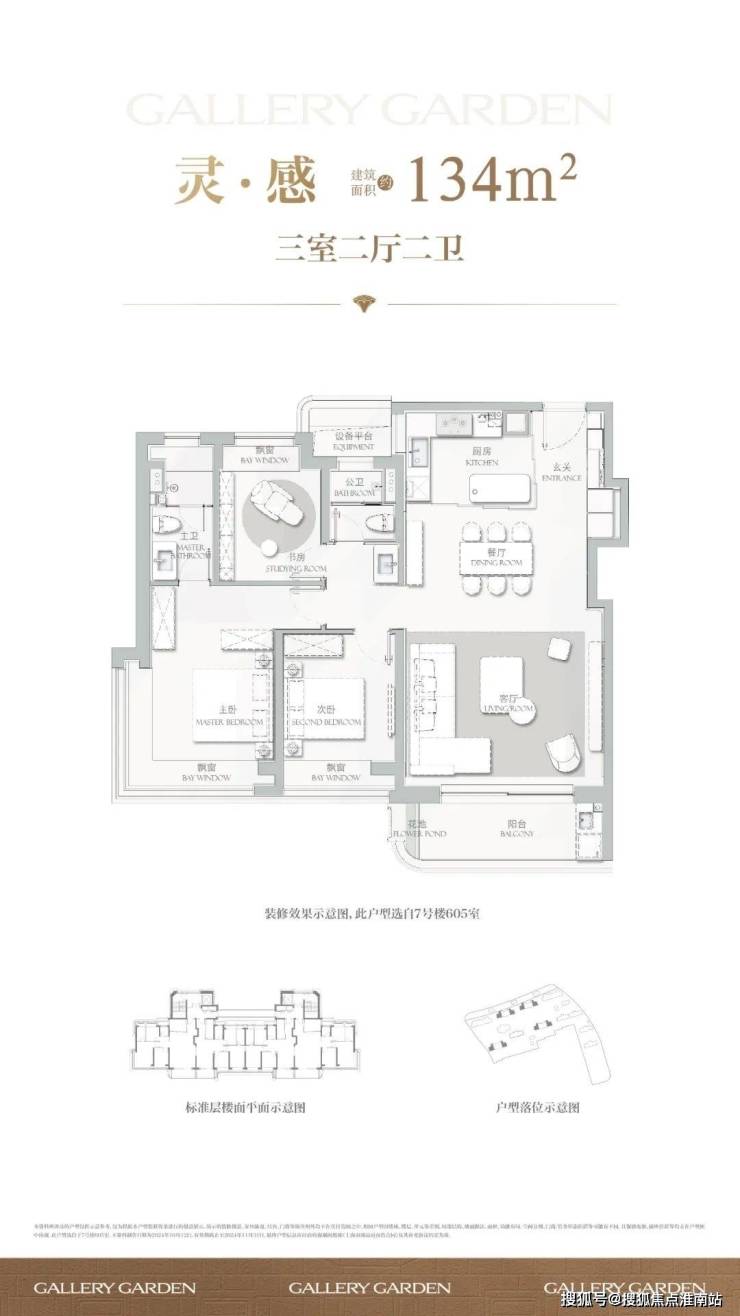 建面约134㎡的户型,总价约1500-1700万。该户型更为惊艳,打造了270°转角窗观景套房,让业主尽情享受阳光的温暖与美景的拥抱。
