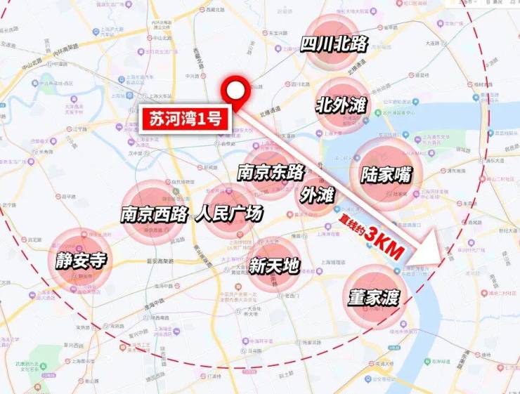 同时直线距离3公里内,涵盖陆家嘴、人民广场、静安寺、南京西路、南京东路、外滩、新天地等城市CBD。