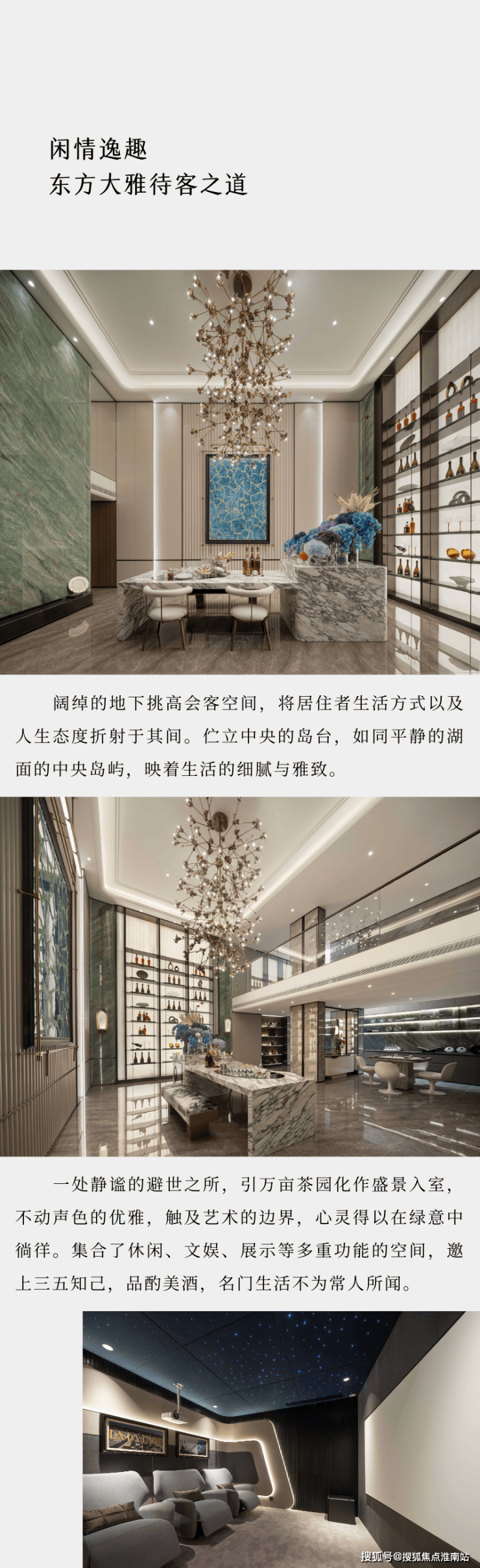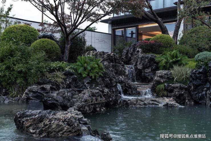 在会所中央,设计了充满中式韵味的四水归堂:屋檐四面围合,中间种植舒展松树,承载着中国传统文化中“天人合一”的理学思想。雨季时节,水从四面的檐壁汇聚,寓意着财源风水,也寄托着家人团圆的美好愿望。