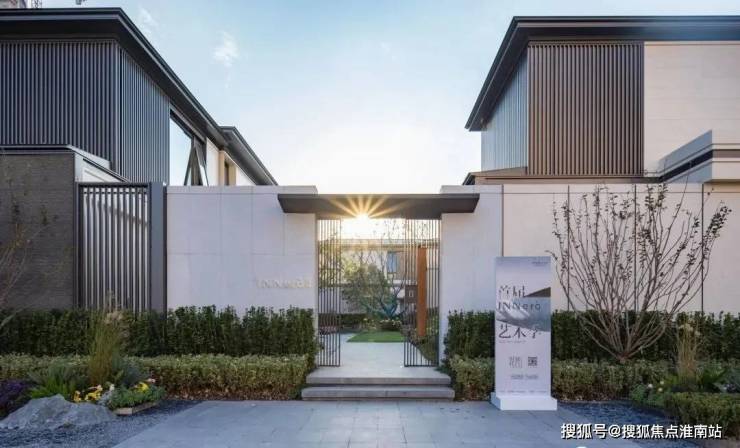 外立面采用石材与金属线条结合,现代中式风格,历久弥新