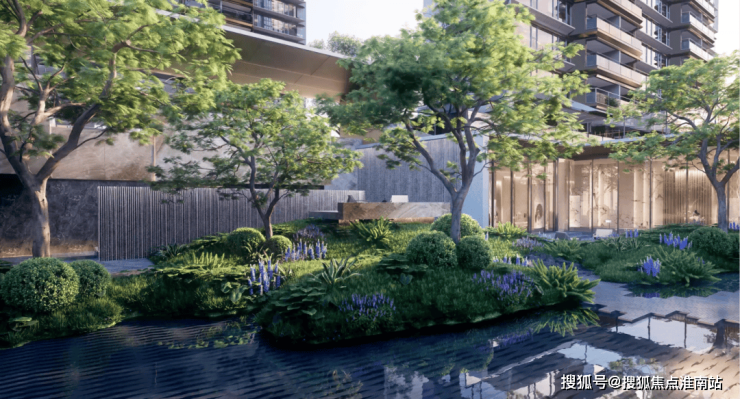 在社区景观层面,从新杨思POD中央公园汲取基因,社区内植入水晶丛林概念,汲取奢石点缀、翡翠铺陈、琉璃镶嵌等珠宝钻石设计理念,内部打造中央公园、生活街区等功能景观空间,营造有参与性、有归属感的水品秘境。
