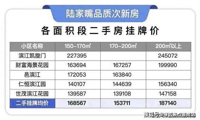其次,从陆家嘴的二手房市场来看:由于稀缺、所以建面约150㎡面积段的产品,在整个陆家嘴二手房市场中非常吃香。目前陆家嘴二手房市场约150-170㎡房源的挂牌均价超过了16.85万/㎡,换算成总价就是约2500万起。