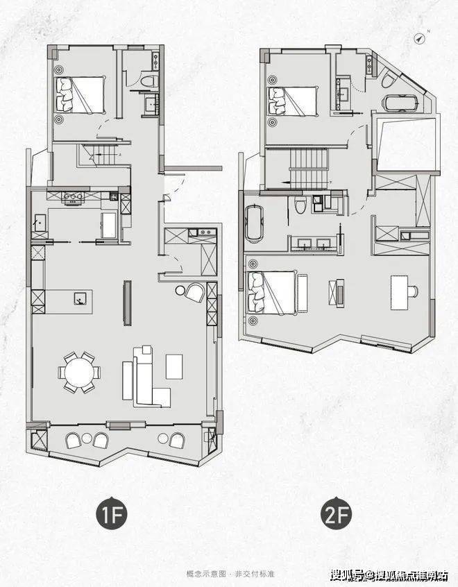 建面约261㎡的户型做成了复式3房,带有一个波浪形设计的大尺度露台,采光和景观俱佳。同时双开间阳台设计,既增加了阳台的使用空间,也增添了生活情趣。