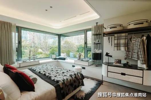 主卧套房进深达4.45米,面宽约4米,舒适感与私密性俱佳,转角飘窗再次成为点睛之笔,让休憩变成一场视觉与心灵的享受。