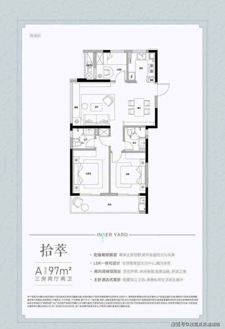 建面约97㎡为边套全明户型, 是目前市面上极为稀缺的小户型边套。