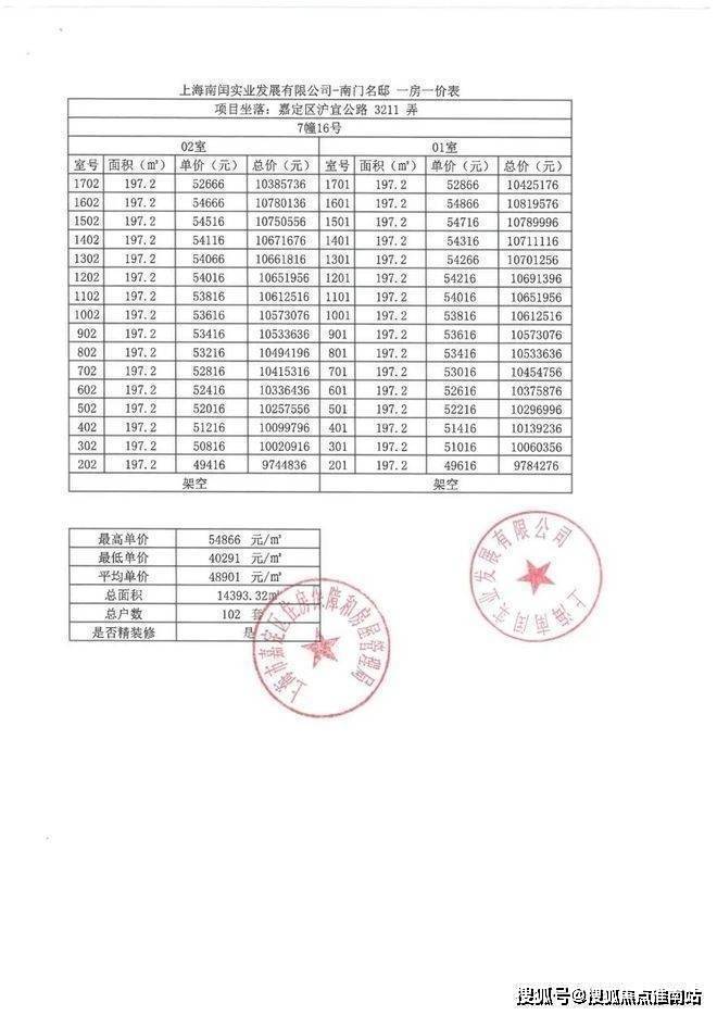 附一房一价表: