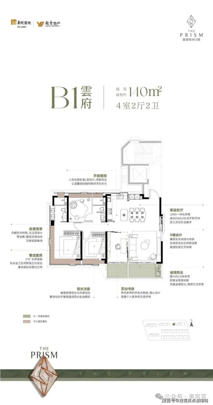 同时,南向客厅+餐厅的一个巨大开间,搭配大面的落地窗,让业主尽享完美的采光及视野。