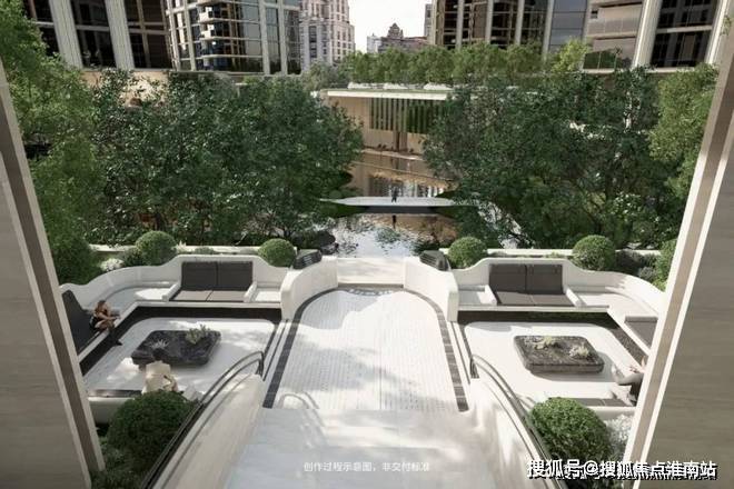 在景观方面,项目内部设置约3500㎡下沉庭院,地下通过坡地自然过渡至地上园区,在核心景观区,通过约6.6米超高架空与6.3米下沉庭院,打造约13米高差的全维森境体验