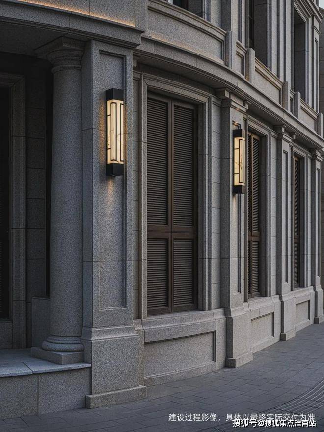 弘安里79号传家大宅的花岗岩石材山墙,从经典的“人形”山墙改良而来,等腰三角极简廓形,山尖以回纹装饰,两端以组合墀头收尾,立体层次造型端庄典雅。当夕阳为山花镀上金边,建筑的边缘随即框住流动的光晖。