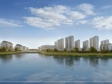 整个社区的北侧与东侧双面环水、西侧是商业,不止有繁华的城市街景,更有滨水风光,光这个社区的占位和天赋,就已经足够出色。