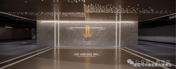 更重要的是,整个地下伴星光厅采用白色铝塑板吊顶,墙面采用珠光面岩板和柔抛面瓷砖铺贴,地面采用抛光瓷砖。地上大堂,单元门厅的雨棚采用香槟金的弧面铝板、立面干挂爱马仕灰蜂窝岩板,岩板上嵌入专属楼栋号,单元门两侧的弧线段金属采用定制模具加工。