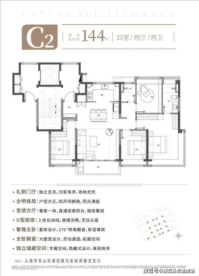 如果预算充足,建面约144㎡的4房洋房产品,更值得改善购房者臻藏!得房率约79%,四开间朝南,面宽阔绰,而且富含各类收纳空间,无论是三孩或三代同堂的家庭都能满足居住需求。