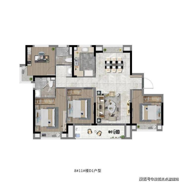 U形厨房,双卫设计,特别是主卧的衣帽间,为女主人带来了更舒适的生活空间。