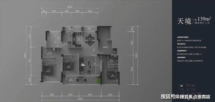 户型优点:139平做到了4开间朝南,而且居然还是3卫两套房市场上稀缺,而且还是边向厨房,标准南北通透,北侧居然有生活阳台,一梯一户隐私性强。