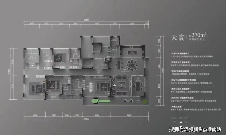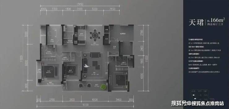 户型优点:166平做到了4开间朝南,而且居然还是3卫两套房,而且还是边向厨房,标准南北通透,北侧居然有生活阳台,一梯一户隐私性强,主卧居然还是拐角飘窗,目前市场罕见。