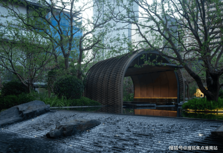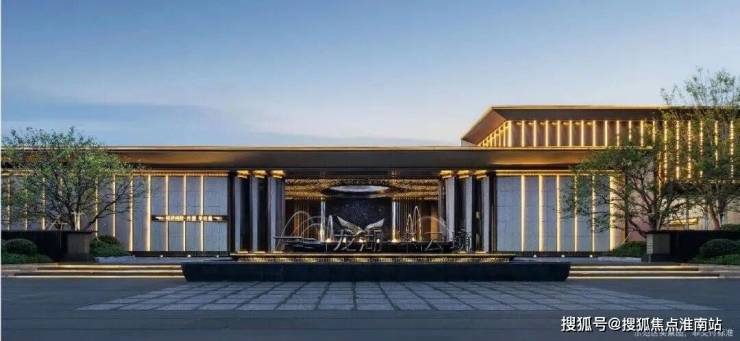 约110M超大尺度城市界面,仪式水景拾级而上,定制级艺术雕塑,酒店礼遇仪式侯迎隐奢归家。