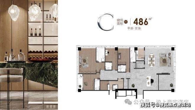 486㎡顶奢户型:五房两厅四卫,顶层带私享云端花园,270°环幕视野