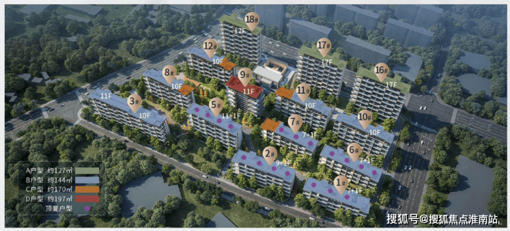 根据规划,项目拟建14栋8-17F住宅,其中,3栋8F住宅、6栋10F住宅、2栋11+1F住宅、3栋17F住宅。
