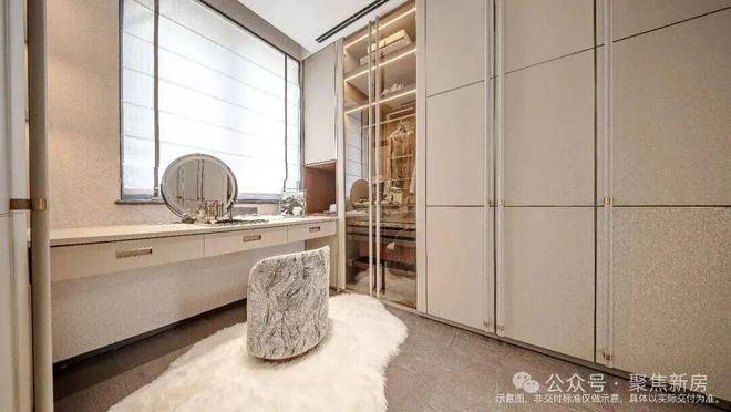 男女衣帽区的设计,更藏着对生活品质的追求,男主人区可以定制整面墙的旋转衣架,西装、衬衫、高尔夫球服按颜色排列,女主人区可以打造嵌入式衣柜,靠窗的首饰台,让清晨的护肤仪式,夜晚的首饰整理,都成了充满仪式感的日常。
