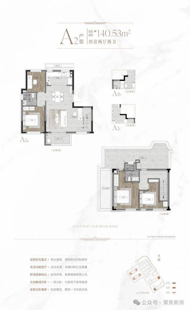 建面约140㎡四房顶复,双层都做到了优秀的南北通透外,得益于复式结构,让"动静分离"从概念落地为日常场景。首层LDKB洄游动线串联270°观景客餐厅与U型厨房,二层静区通过"双洄游套房"设计实现三代互不干扰。顶复户型还将额外配备博世双门冰箱及全屋劳芬智能马桶,以德系精工赋能生活细节。